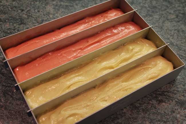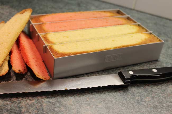 If you don’t have a special Battenberg cake tin you can easily make the dividers to fit your own cake tin from strips of foil, it’s a bit more effort and the end result not quite so neat so if you really love Battenberg cake, the Alan Silverwood Battenberg Cake Tin is a very good investment.