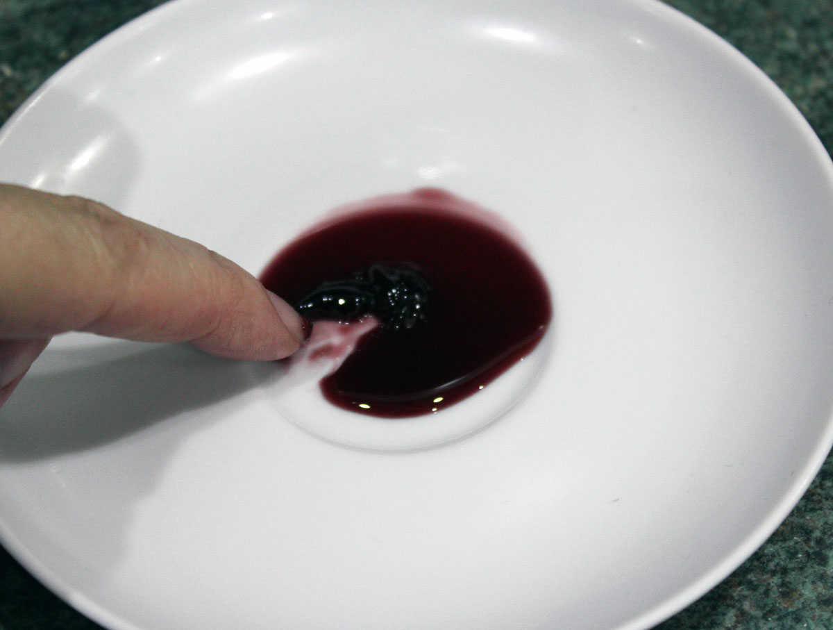 After 15 minutes, turn off the heat and carefully place a teaspoon of the jelly onto the cold saucer and place back in the fridge for 2 minutes.