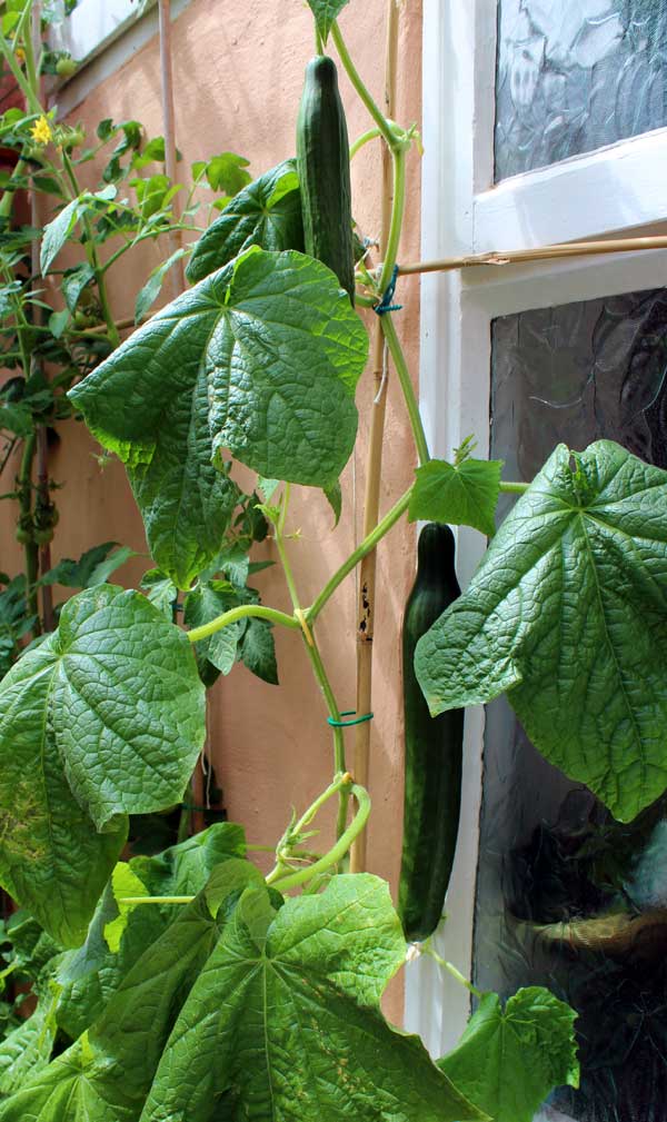 As we have not got any garden at home, any thing we plant here has to be in pots and there is very little room so we have allowed space in a glass roof ‘lean-to’ along the side of the house to grow some tomatoes and cucumbers…always a favourite in summer!